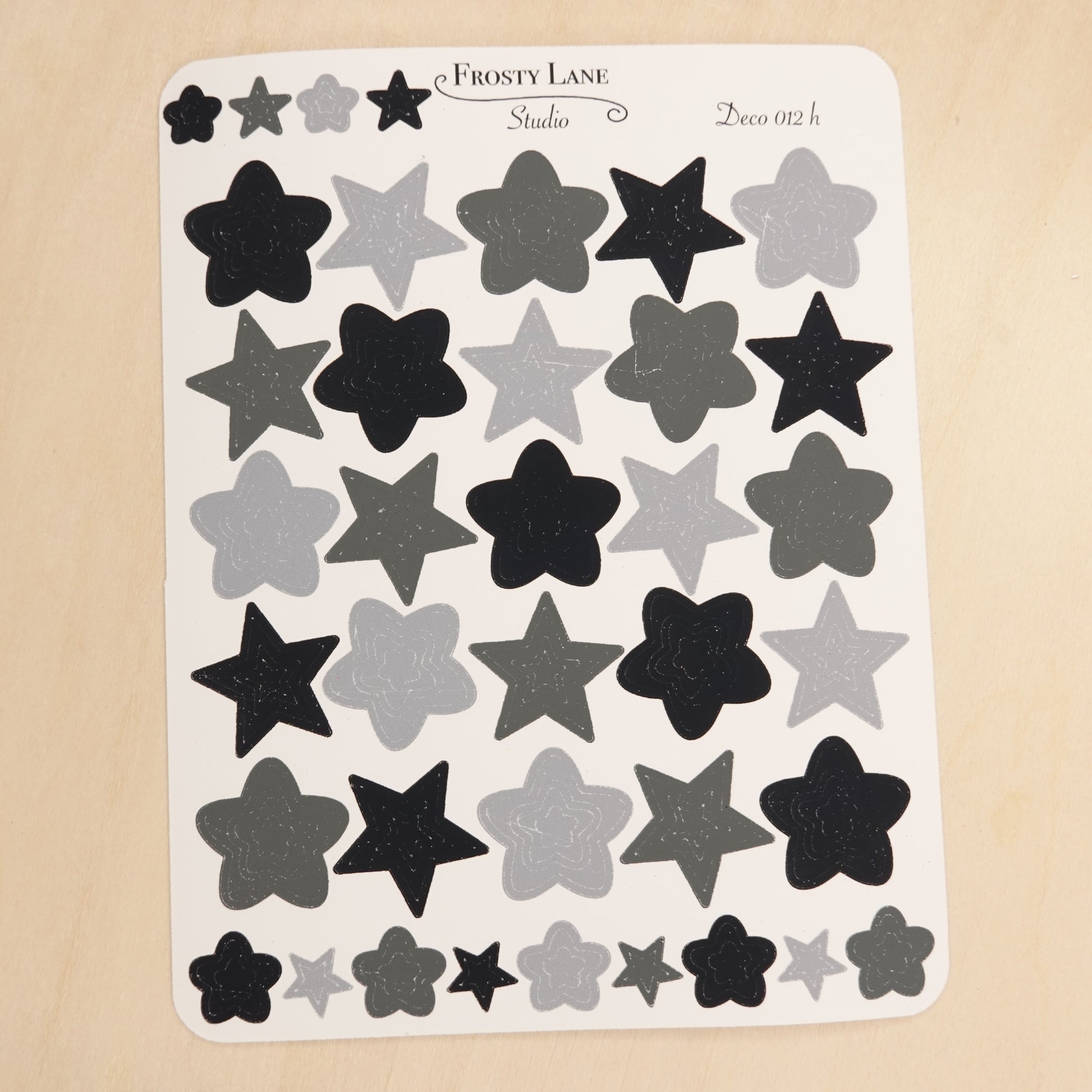 Deco012.h.Black Grey Star Outline Sticker Sheet